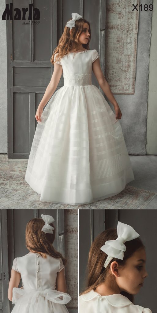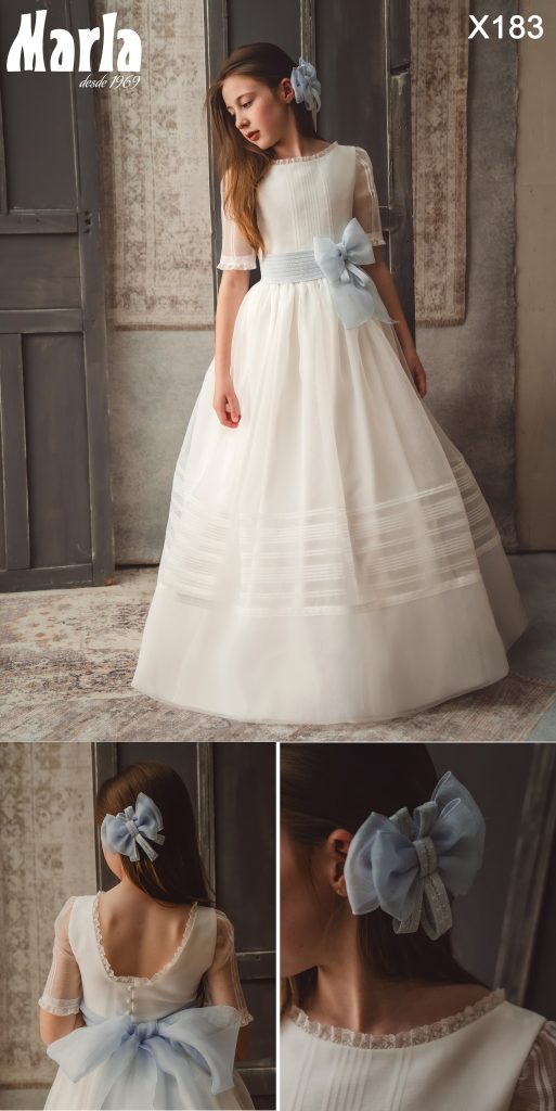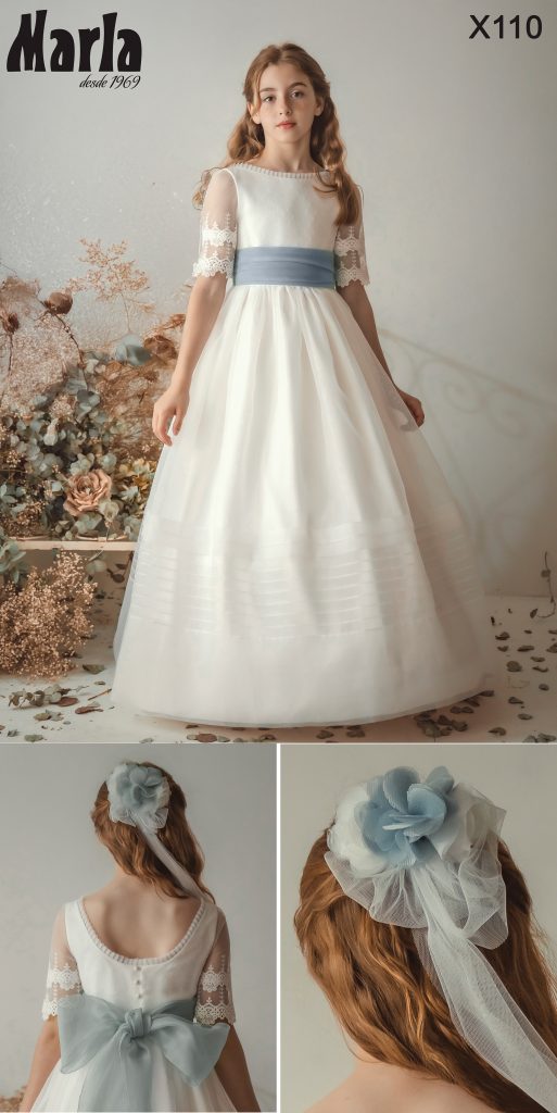 Los vestidos de comunión Marla 2026 destacan por su confección artesanal en España, con una cuidada selección de tejidos nobles y una atención minuciosa a cada detalle. En Marla Comuniones, cada vestido se diseña y adapta a la medida de cada niña, garantizando un ajuste perfecto y una experiencia inolvidable en uno de los días más importantes de su infancia.
